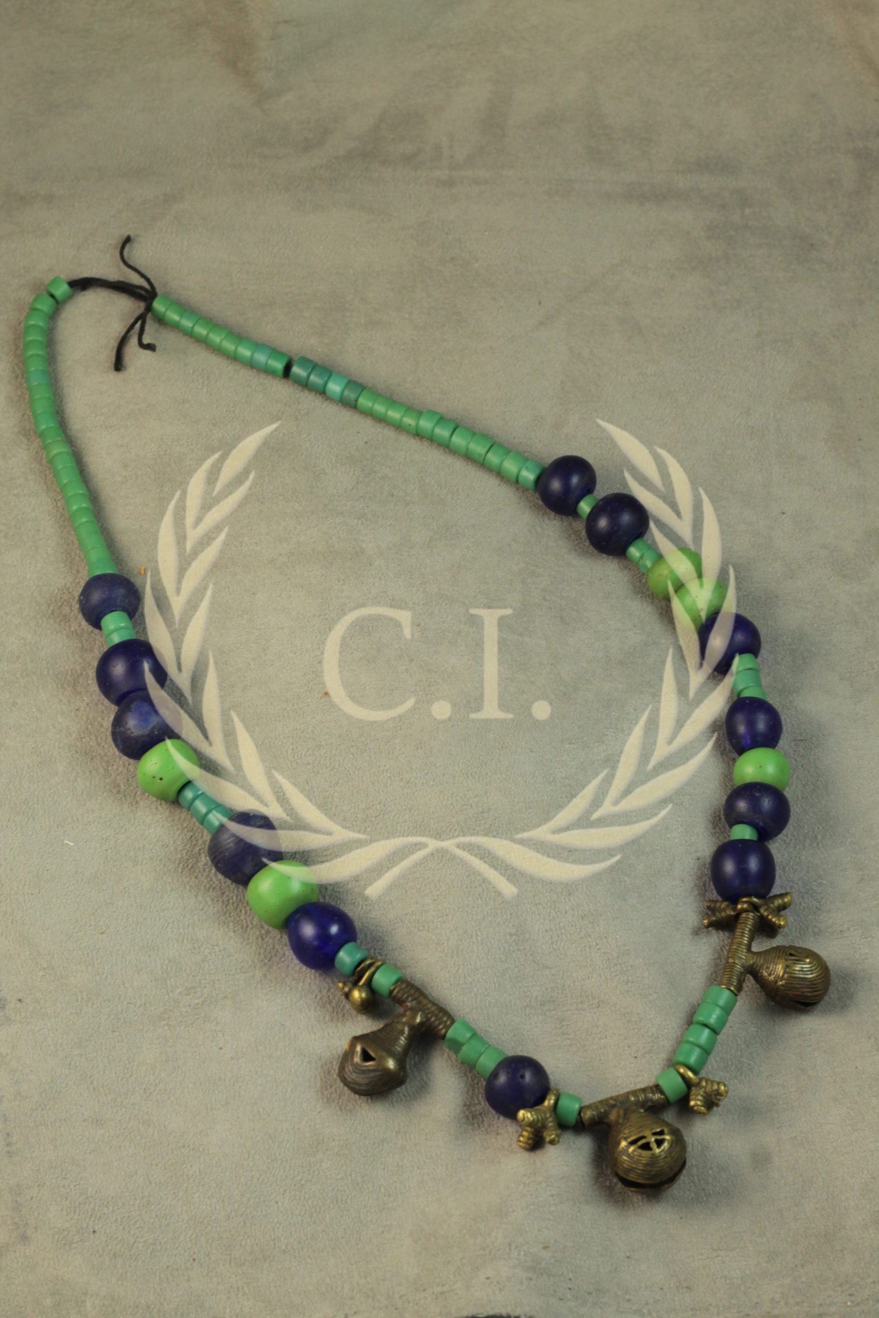 Ashanti Nigerian Bell and Glass Bead Necklace, 20th Century
